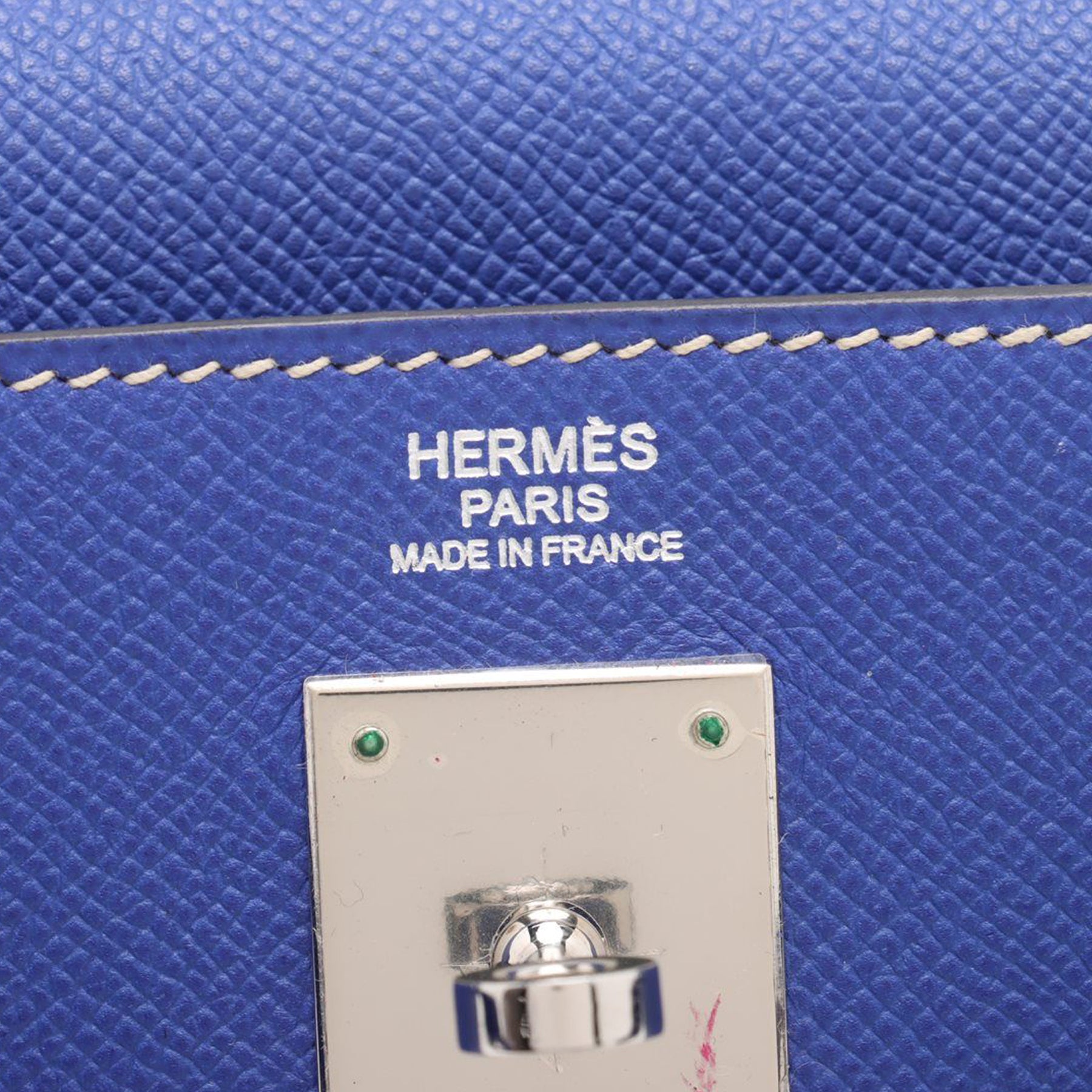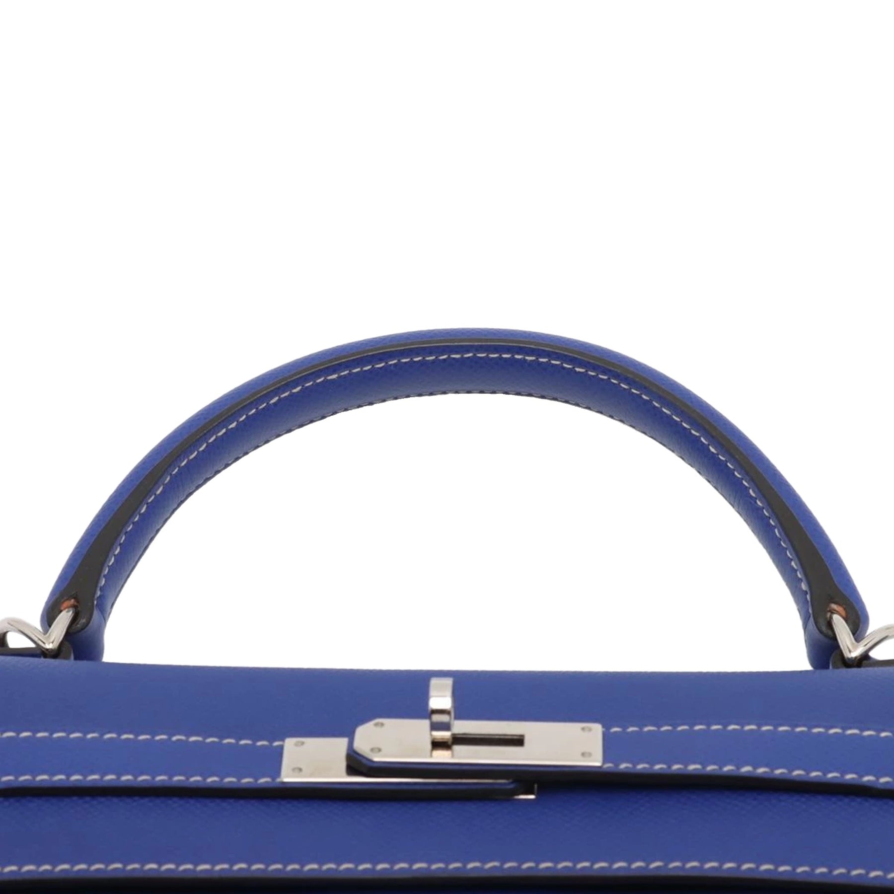 Ce sac Verso Kelly II est confectionné en cuir Epsom bleu électrique, avec un intérieur couleur Mykonos. Il est doté d'une poignée supérieure plate en cuir, d'une bandoulière plate amovible en cuir, d'un rabat à fermoir pivotant et fermeture à tirette, ainsi que de poches intérieures zippées et plaquées. Il est en excellent état.