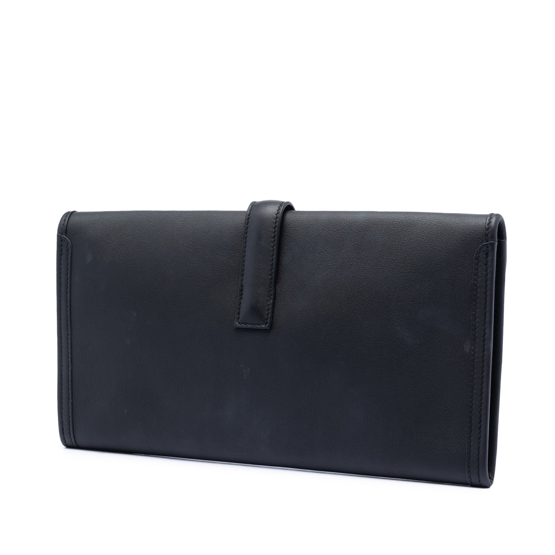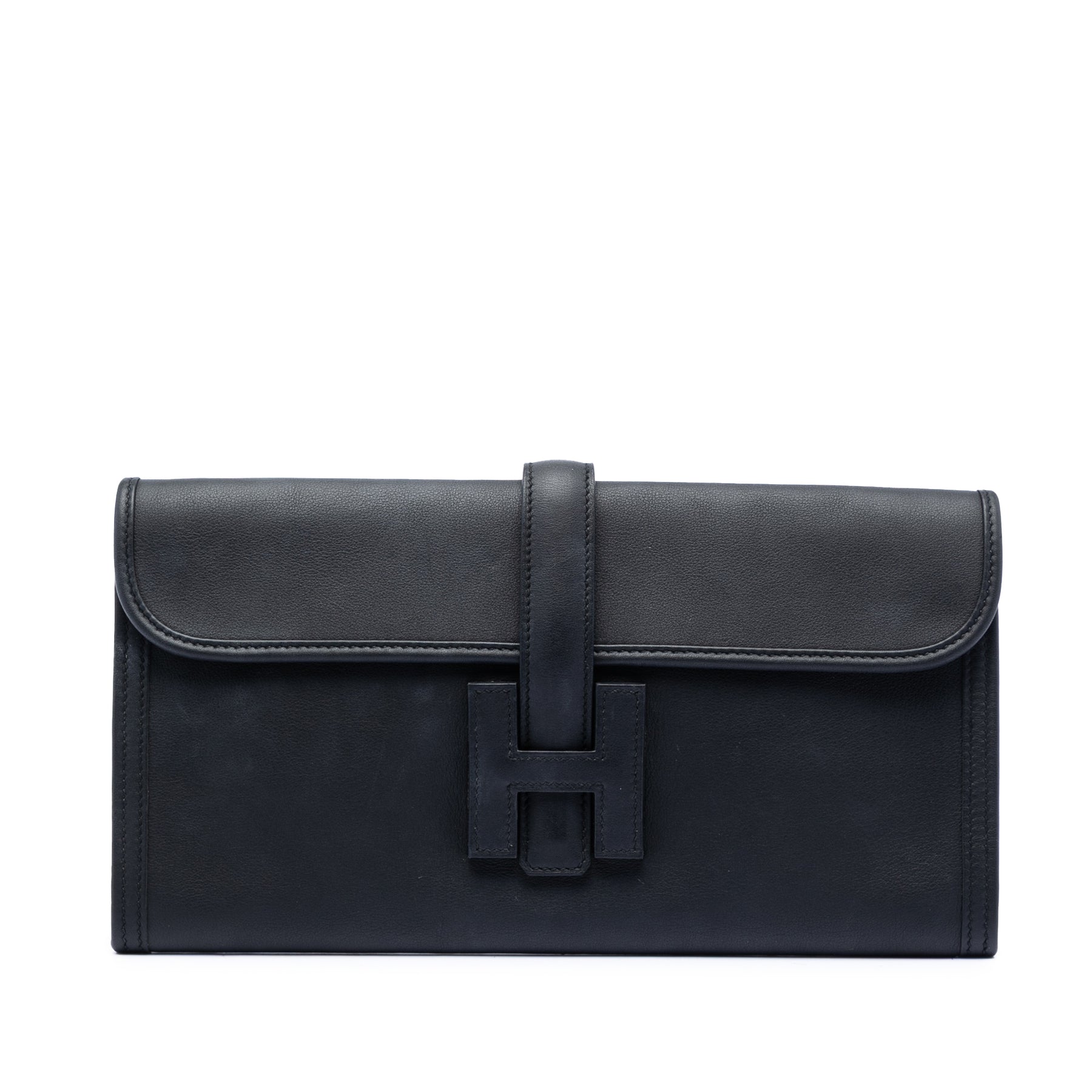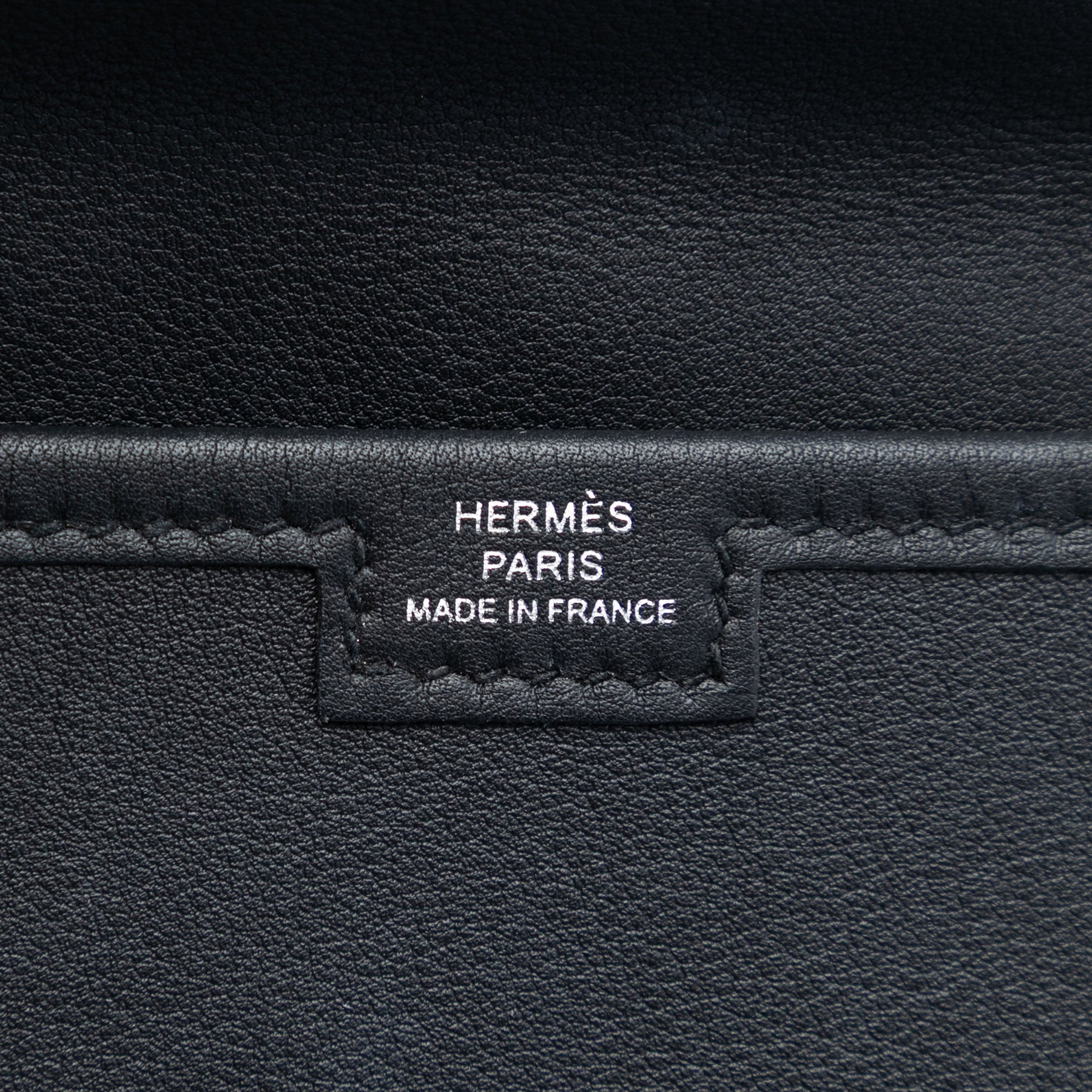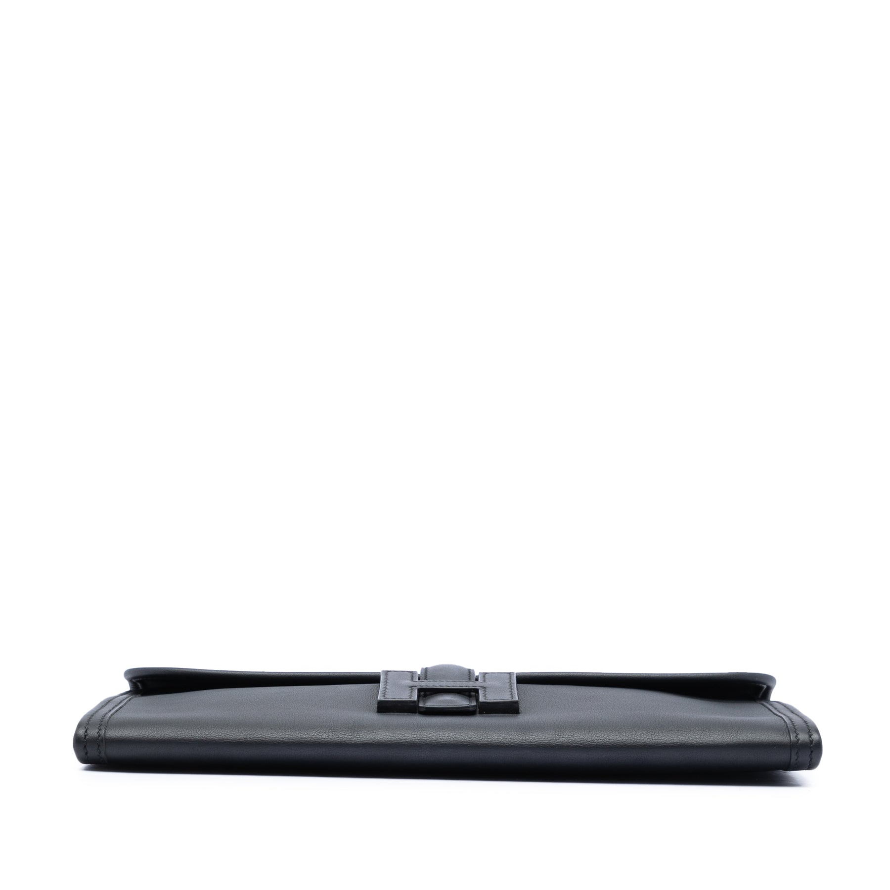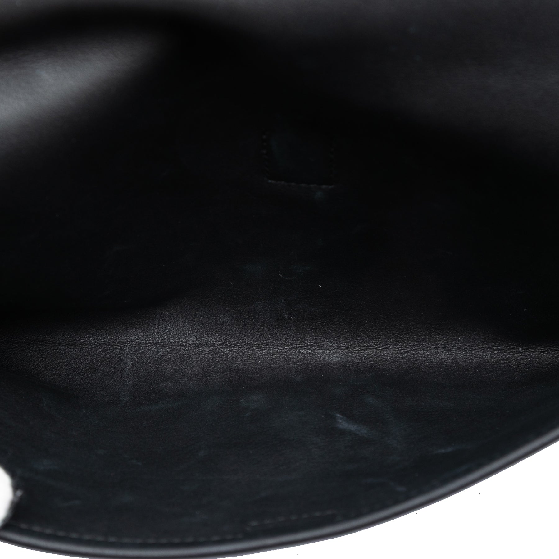 Le sac Jige Elan est confectionné en cuir Evercolor noir et possède un rabat supérieur avec fermeture à tirette. Il est en bon état.