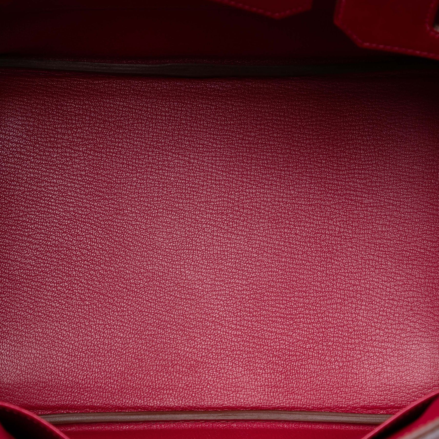 Ce sac Birkin 35 de Ghillies est confectionné en cuir Tadelakt couleur Rubis, possède des anses roulées en cuir, un rabat avant avec fermoir tourniquet, ainsi que des poches intérieures zippées et plaquées. Il est en excellent état.