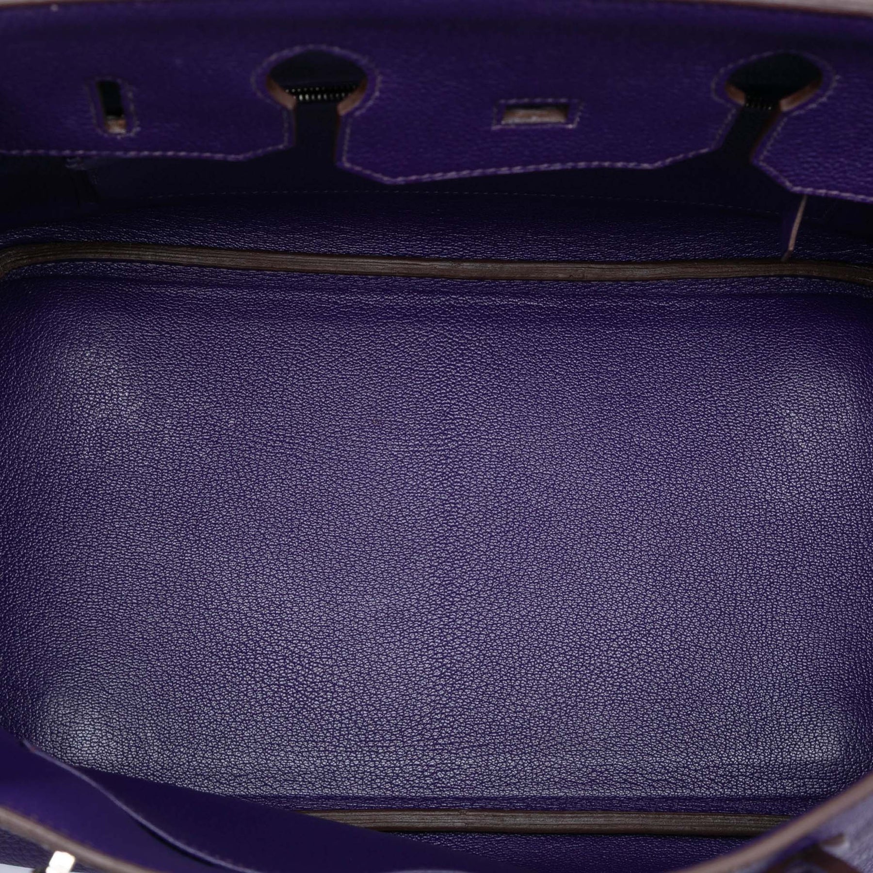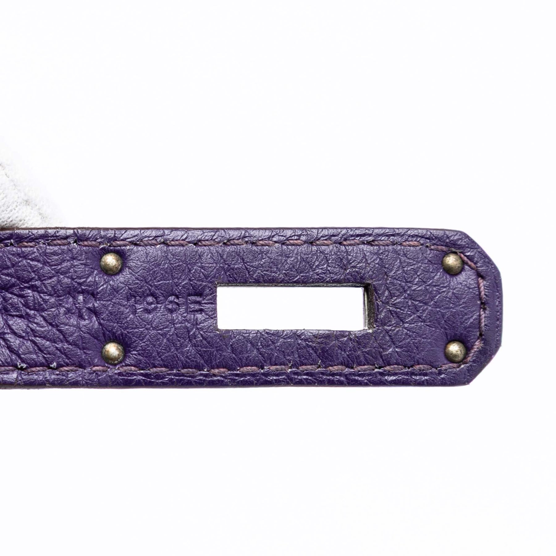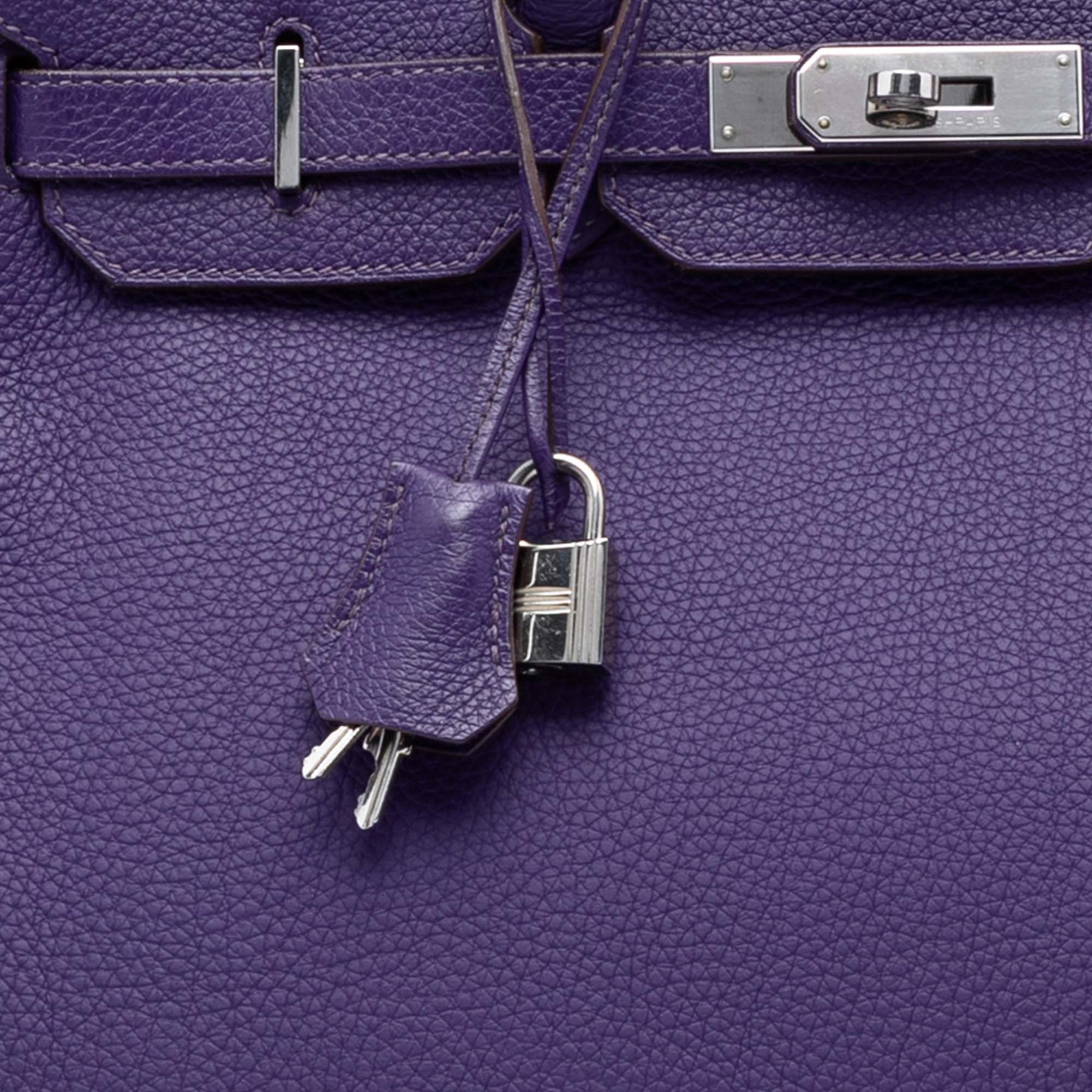 Ce Birkin 35 est confectionné en cuir Togo couleur iris, possède des anses roulées en cuir, un rabat avant avec fermeture à rabat et fermoir tourniquet, ainsi que des poches intérieures zippées et plaquées. Il est en excellent état.