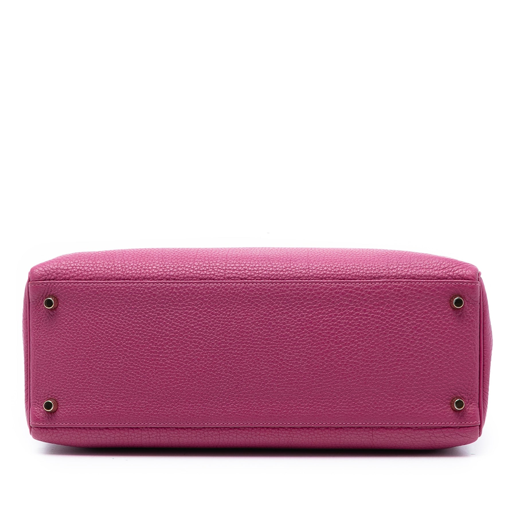 Ce sac Kelly II est confectionné en cuir Togo couleur Tosca et possède une poignée supérieure plate en cuir, une bandoulière plate amovible, un rabat supérieur avec fermeture à tourniquet, ainsi que des poches intérieures zippées et plaquées. Il est en bon état.
