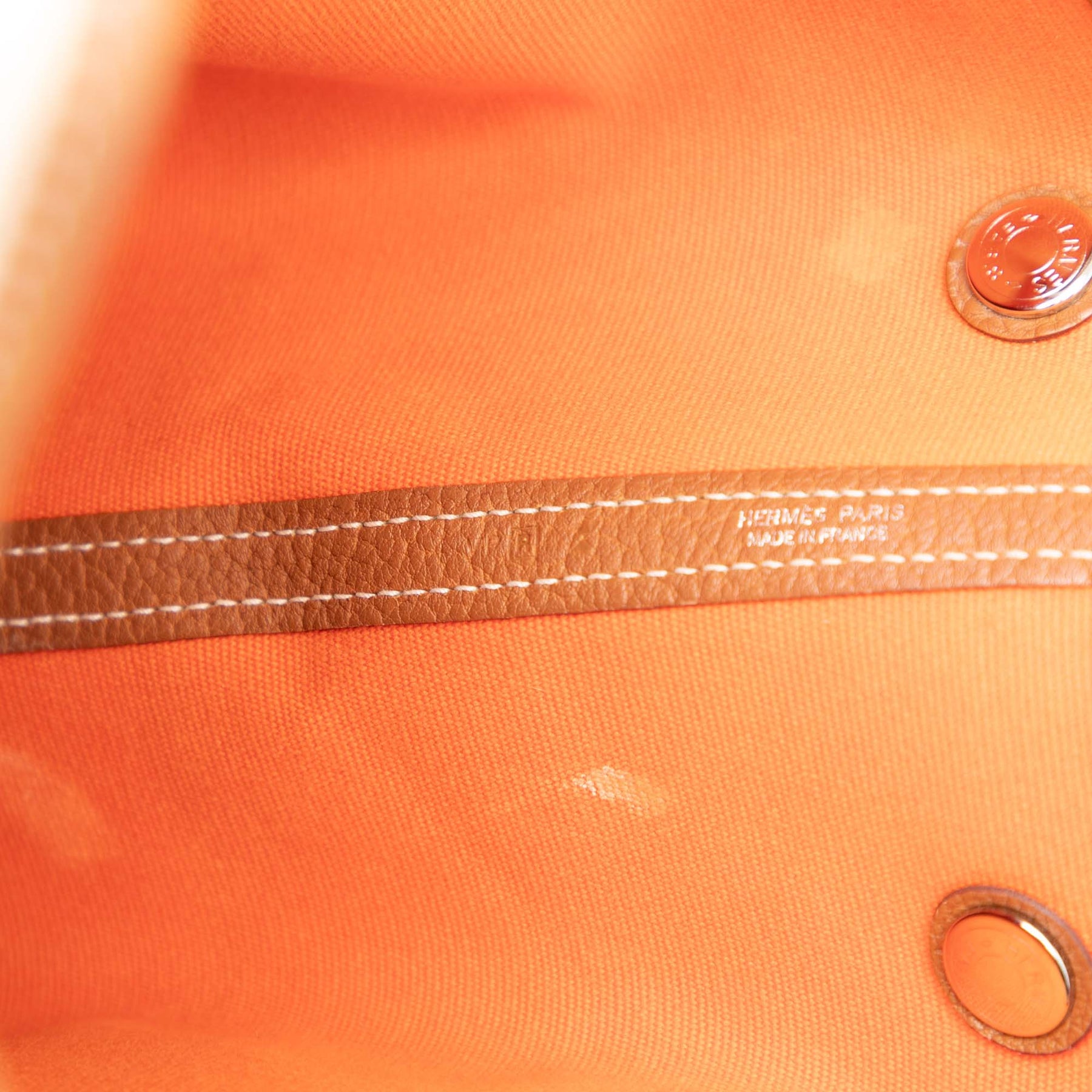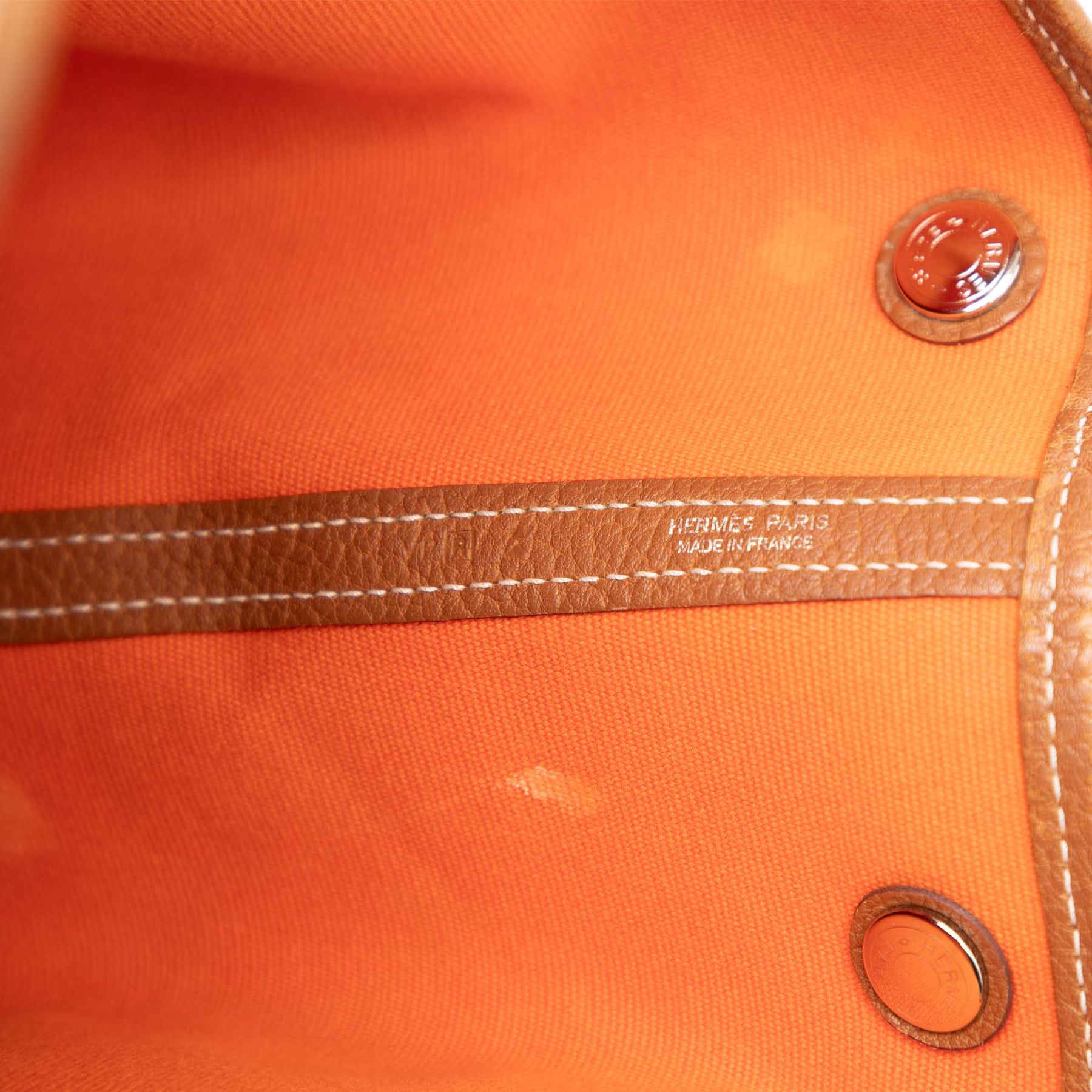 Le sac Garden Party 36 est confectionné en toile avec des finitions en cuir Negonda, des anses roulées en cuir et une ouverture sur le dessus avec fermeture à bouton-pression. Il est en bon état.
