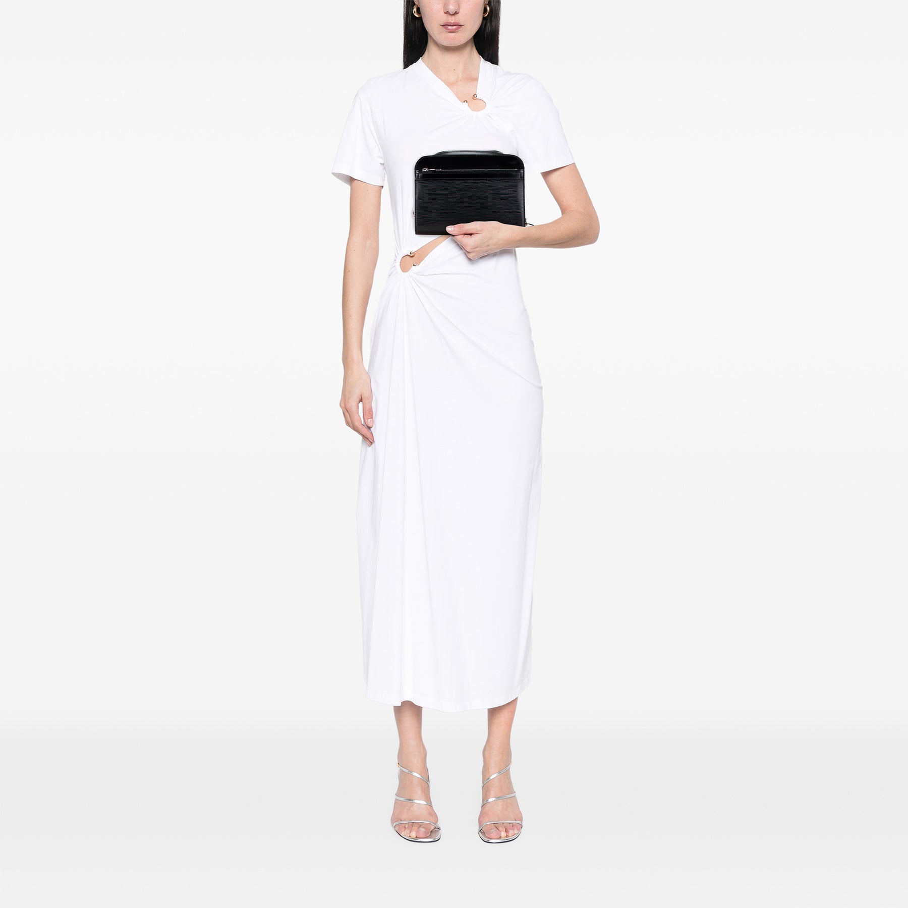 La Pochette Hoche est dotée d'un corps en cuir épi, d'une dragonne plate en cuir, d'une fermeture zippée sur le dessus, d'une poche extérieure zippée sur le devant et de poches intérieures zippées et plaquées. Son état est excellent.