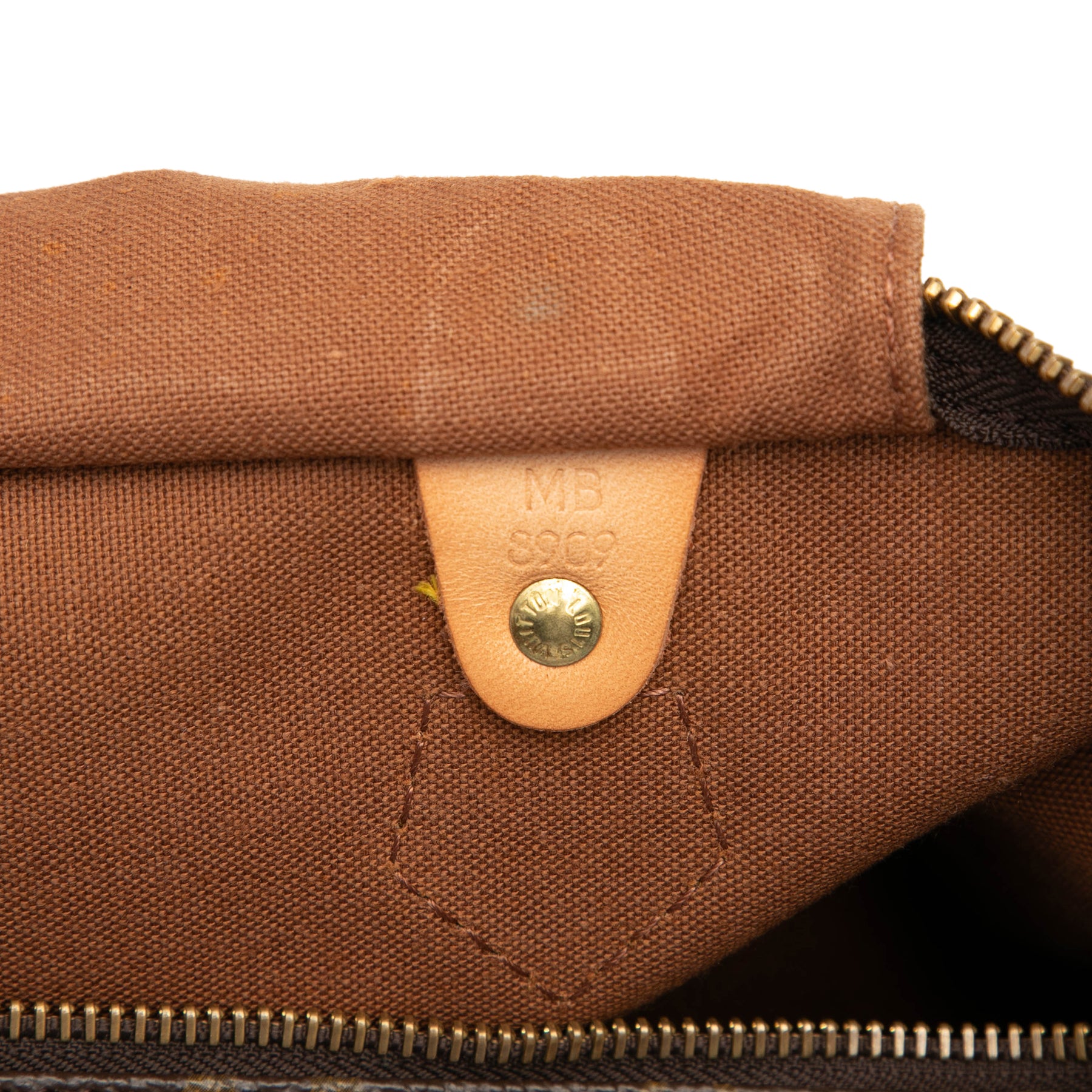 Le Speedy 35 est doté d'une toile monogrammée, de poignées roulées en cuir vachetta, d'une fermeture zippée sur le dessus et d'une poche intérieure plaquée. Il est en bon état.