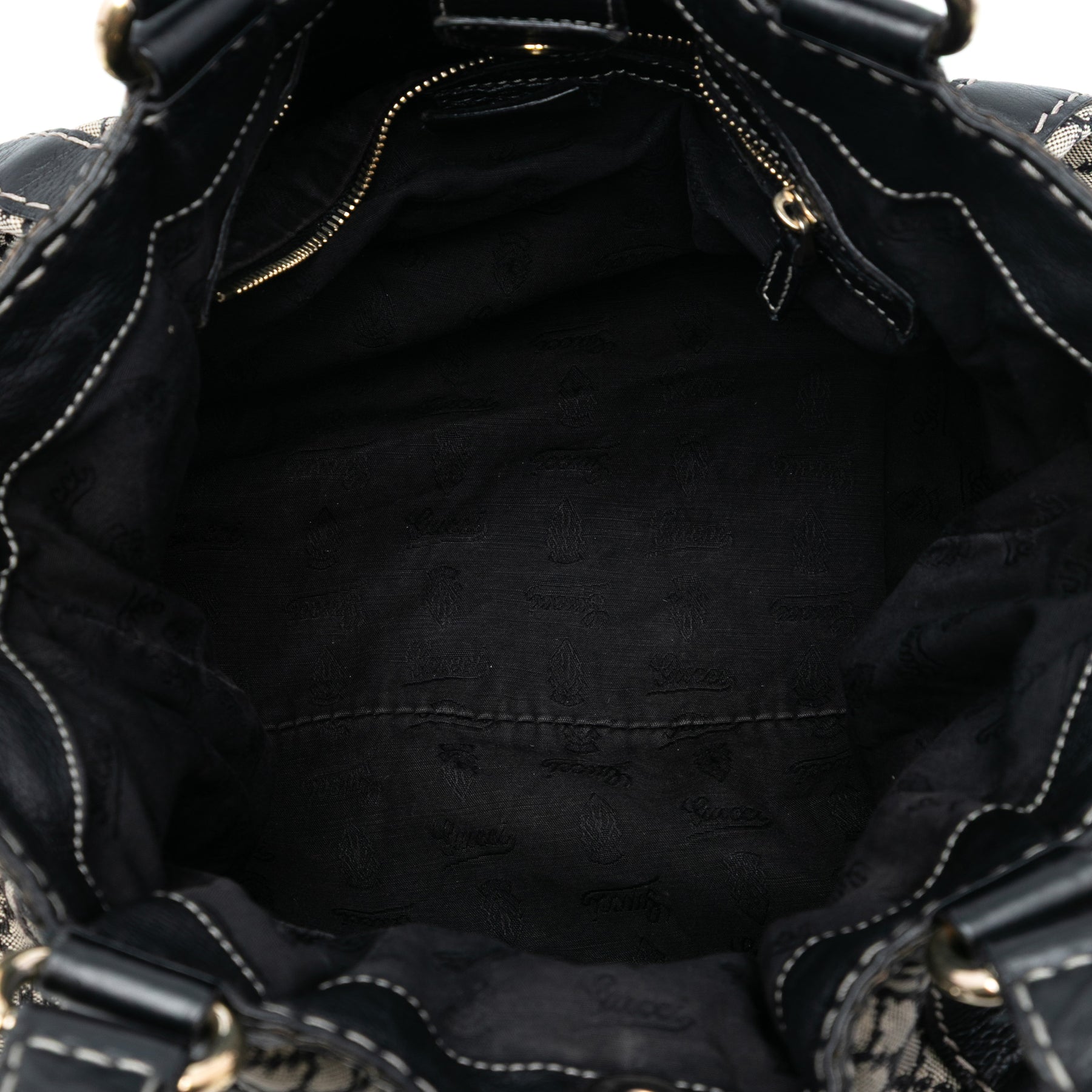 Ce sac à main est en toile à motifs de diamants, possède des anses plates en cuir, une ouverture sur le dessus avec fermeture magnétique et une poche intérieure zippée. Il est en bon état.