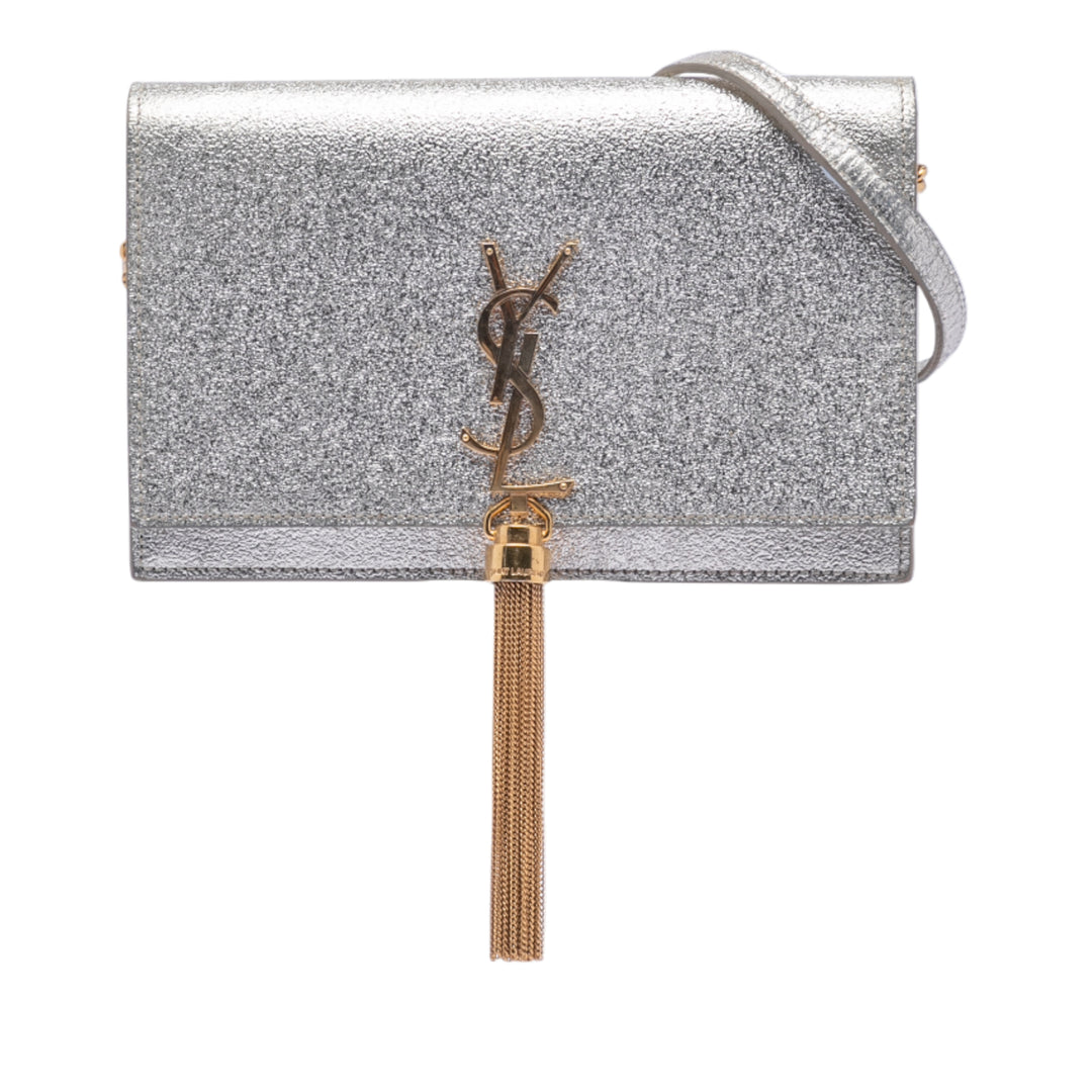 Saint Laurent Metallic Cuir de veau Monogram Kate Pompon Wallet on Chain