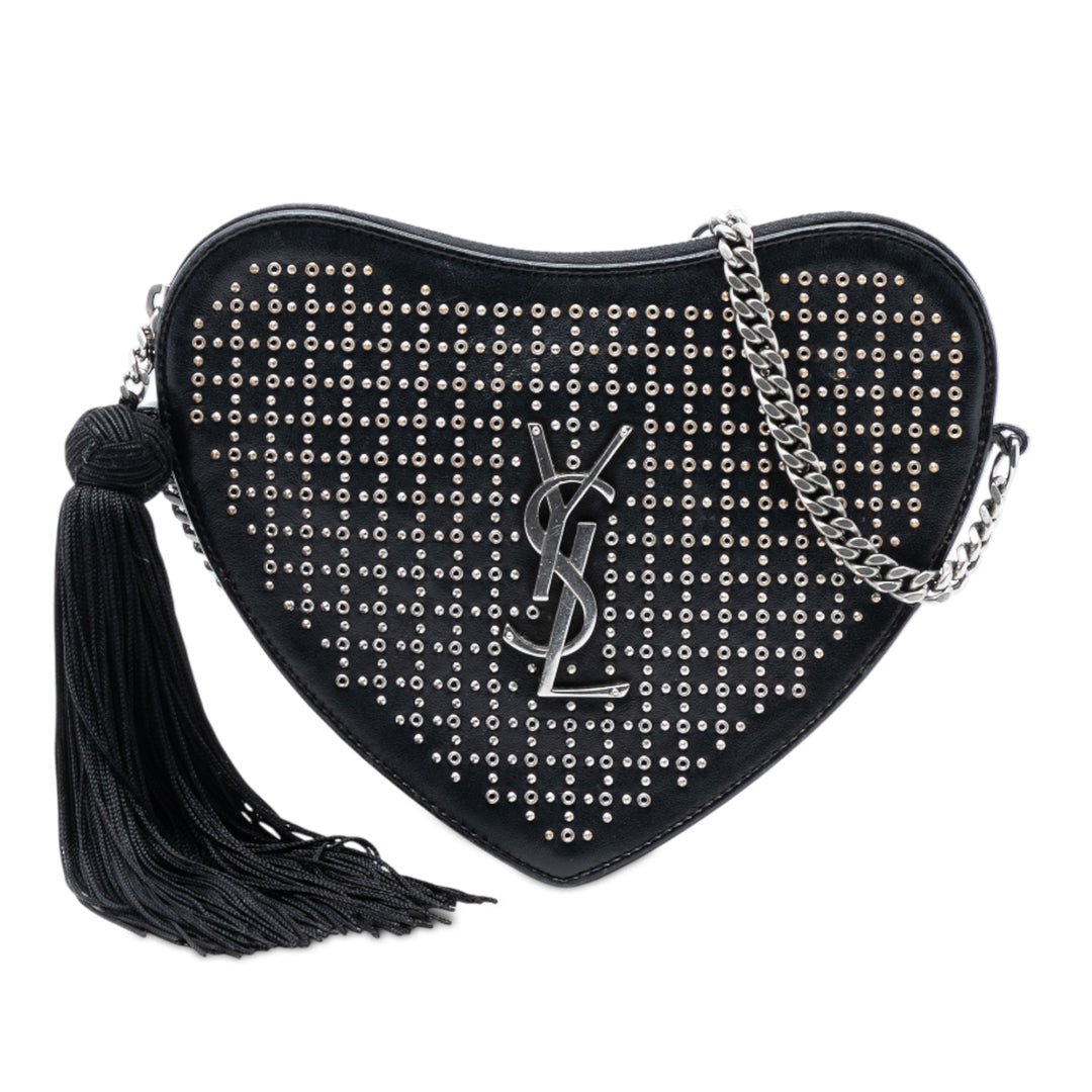 Saint Laurent clouté Cuir de veau Sac Coeur Heart Pompon Sac porté croisé