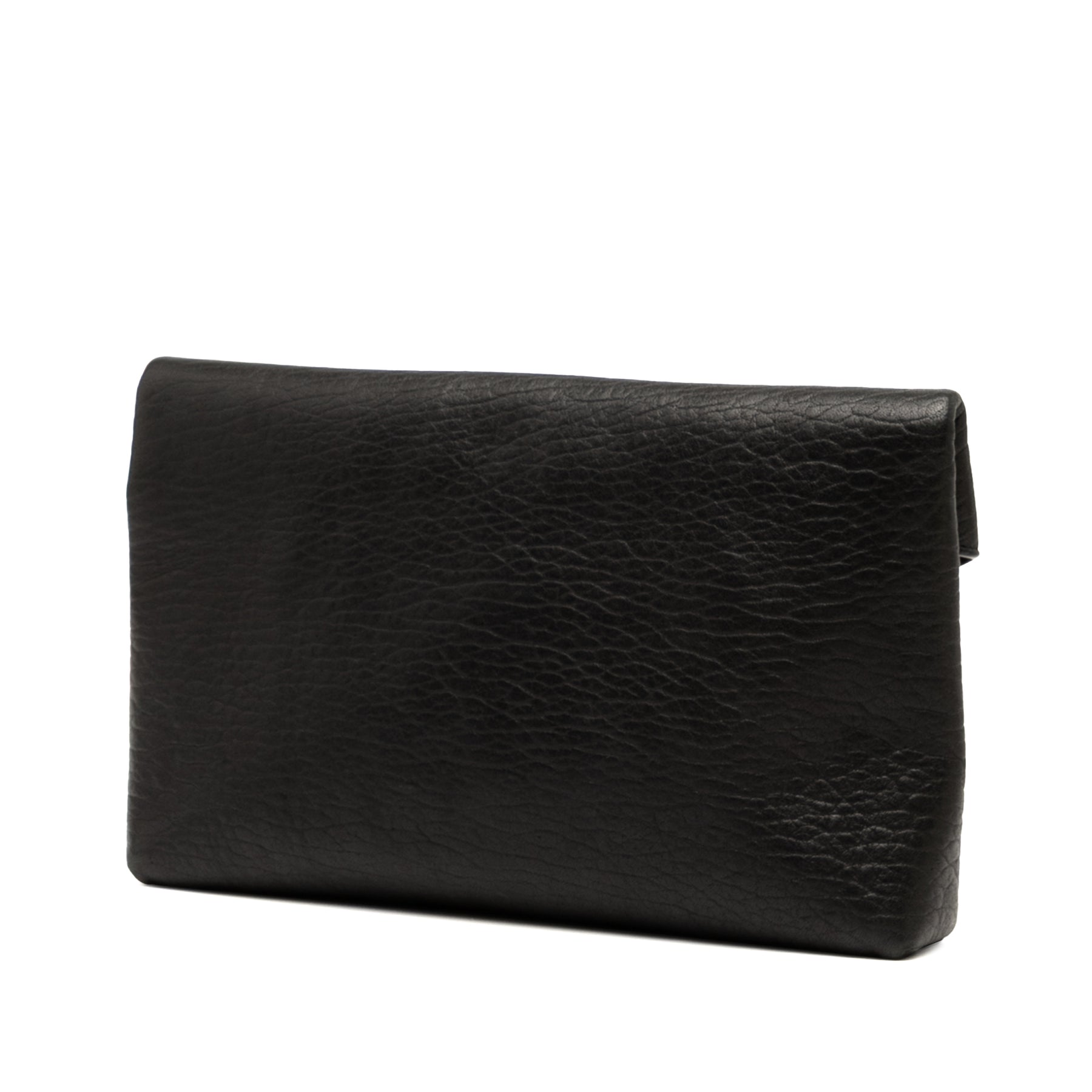 Cette pochette est en cuir d'agneau, possède un rabat avant avec fermeture magnétique et une poche intérieure plaquée. Elle est en excellent état.