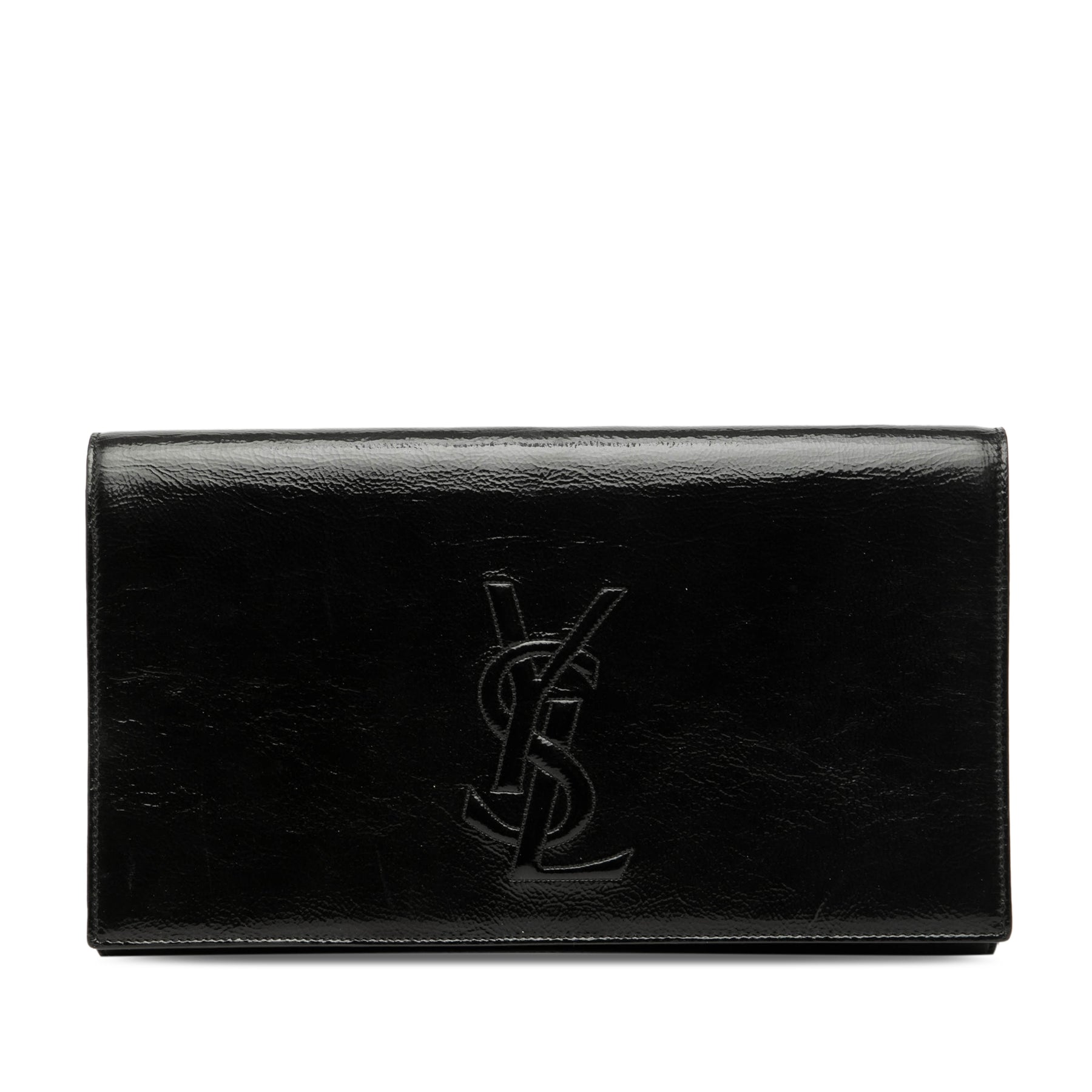 Saint Laurent Large Textured Cuir verni Monogram Belle De Jour Pochette